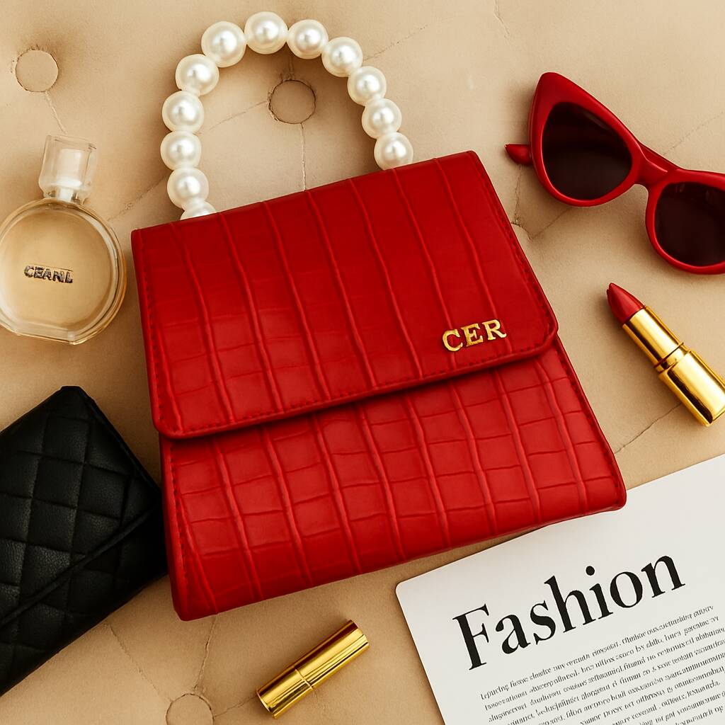 Vegan Leather Crossbody Bag With Pearl Handle
