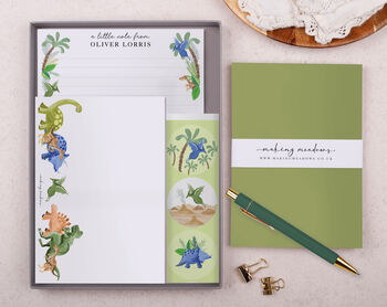 A5 Personalised Children's Stationery Set Gift With Dinosaur Design