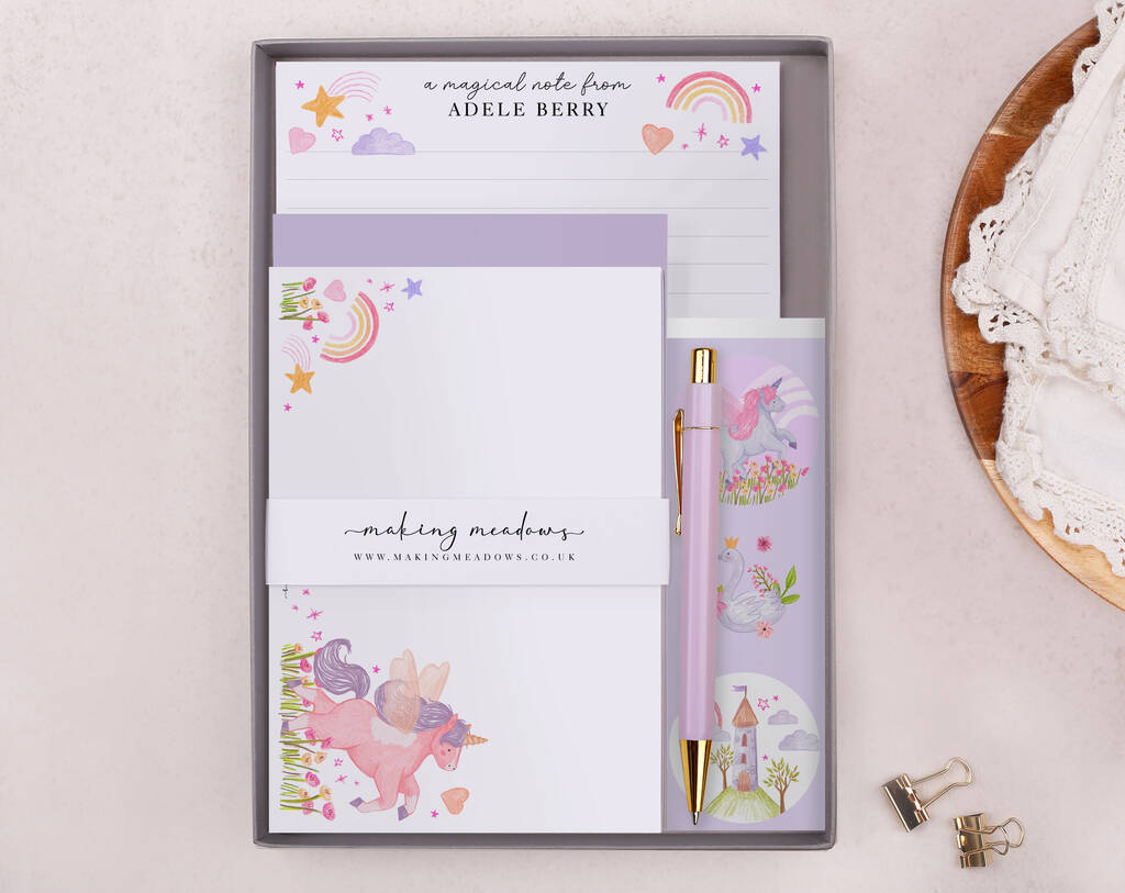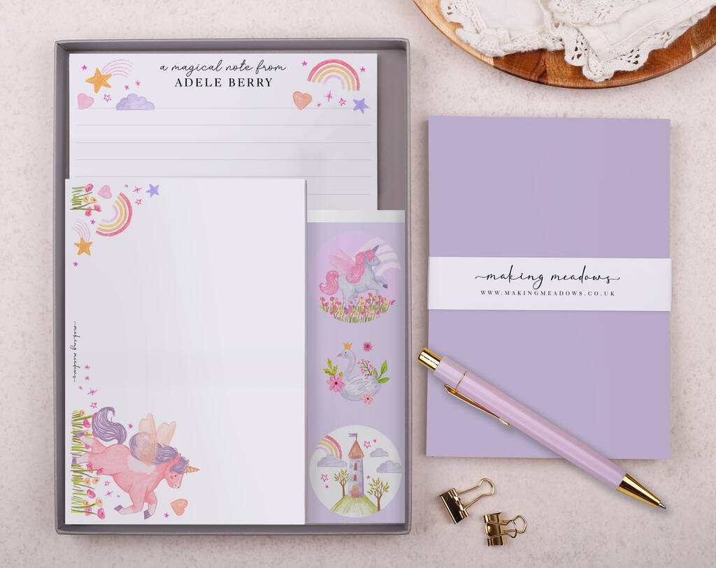 A5 Personalised Children's Stationery Set Gift With Unicorn Design