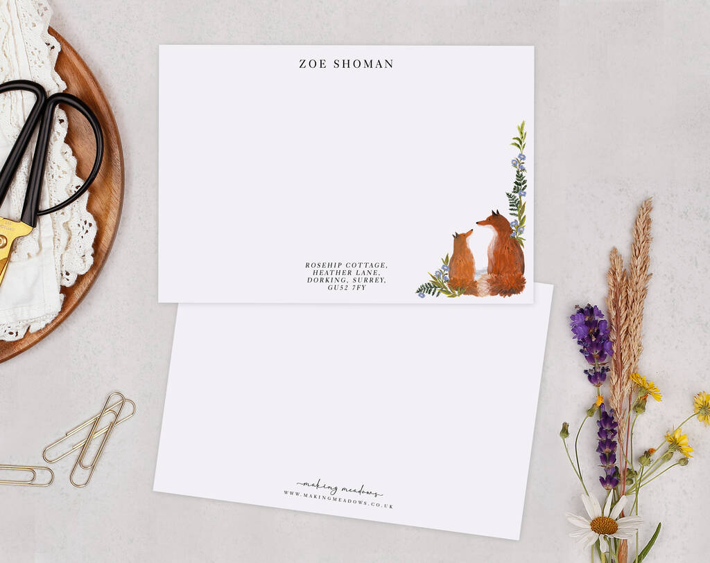 Botanical Fox Personalised Address Note Cards A6 Notecard Set
