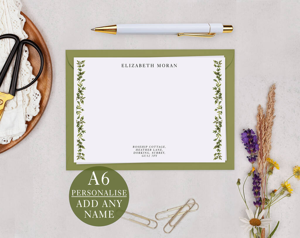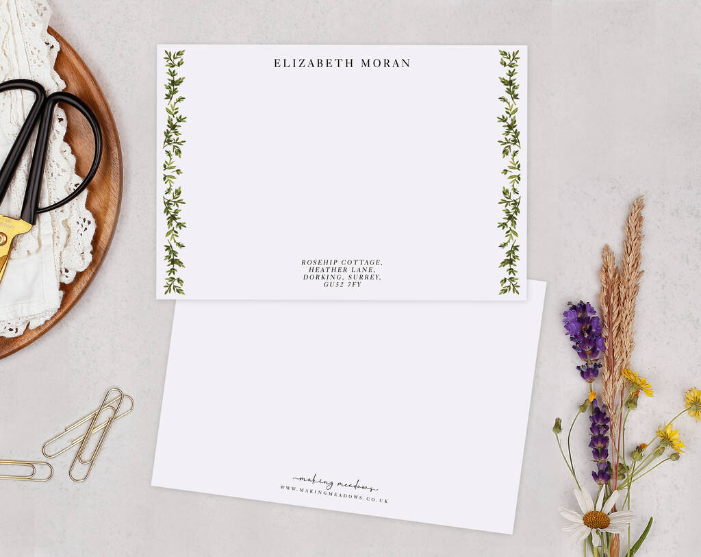 Botanical Personalised Address Note Cards A6 Notecard Set