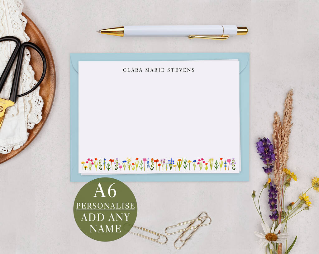 Ditsy Floral Personalised Note Cards A6 Notecard Set