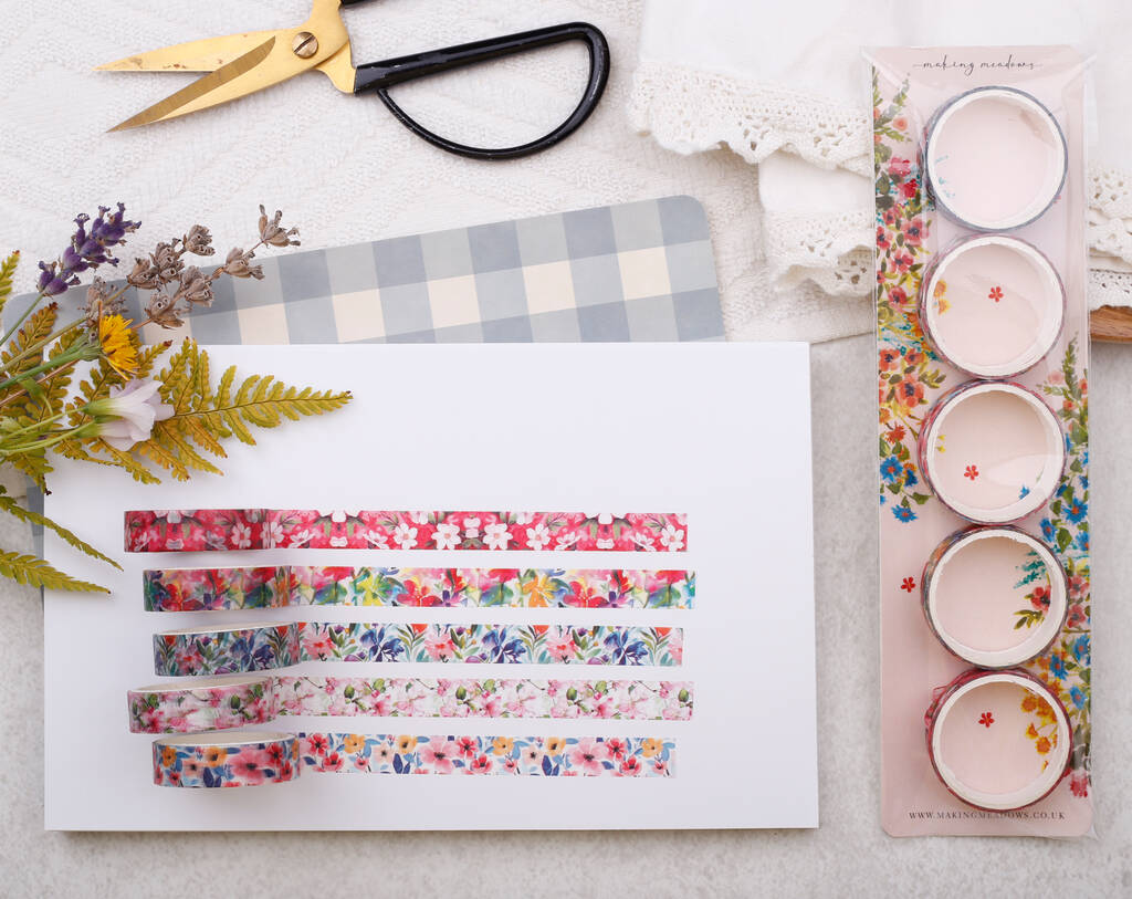 Garden Flowers Washi Tape Mixed Pack, Eco Friendly Paper Sellotape Roll