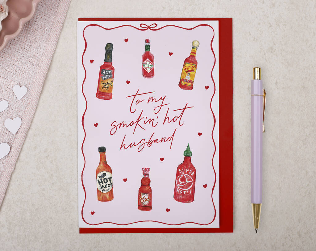 Hot Sauce Valentines Day Card For Husband In Spicy Pink Design
