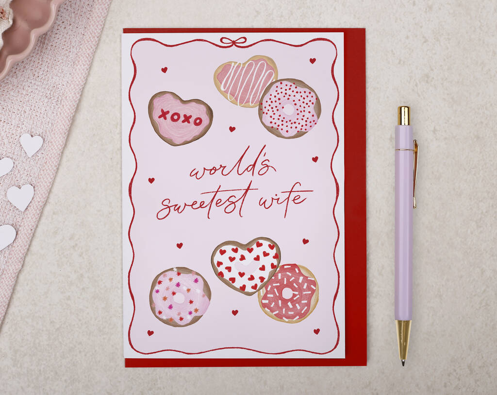 Pink Valentines Day Card For Wife Sweet Donut Design