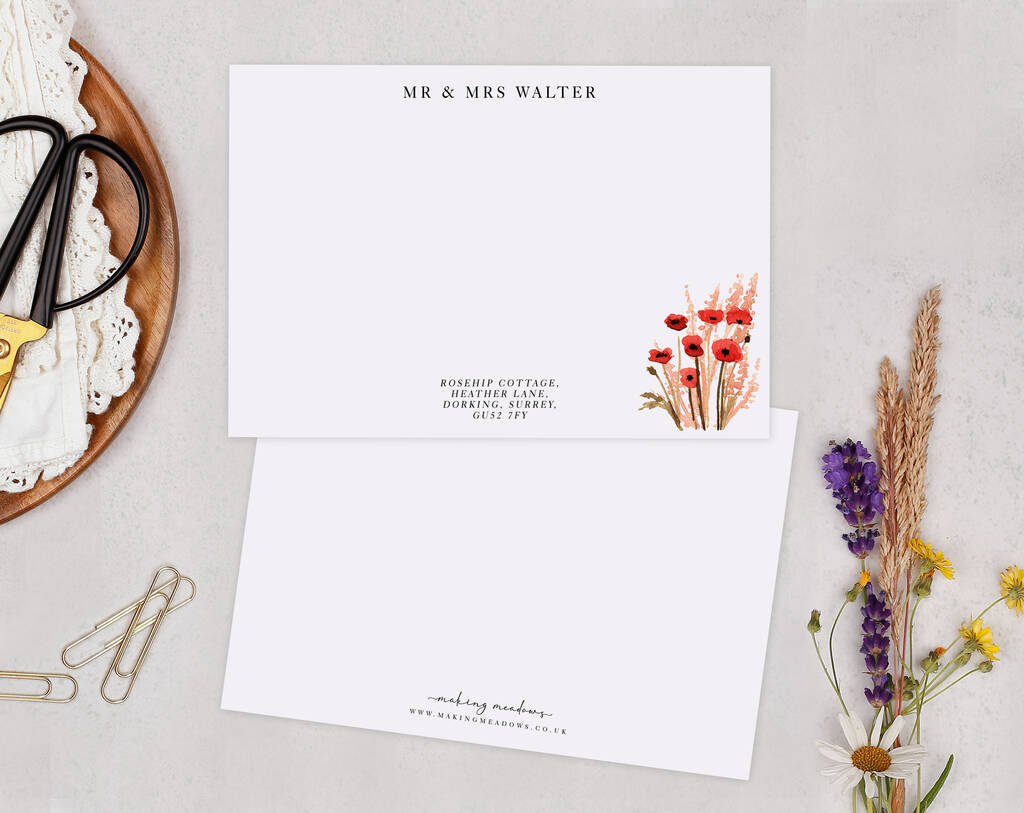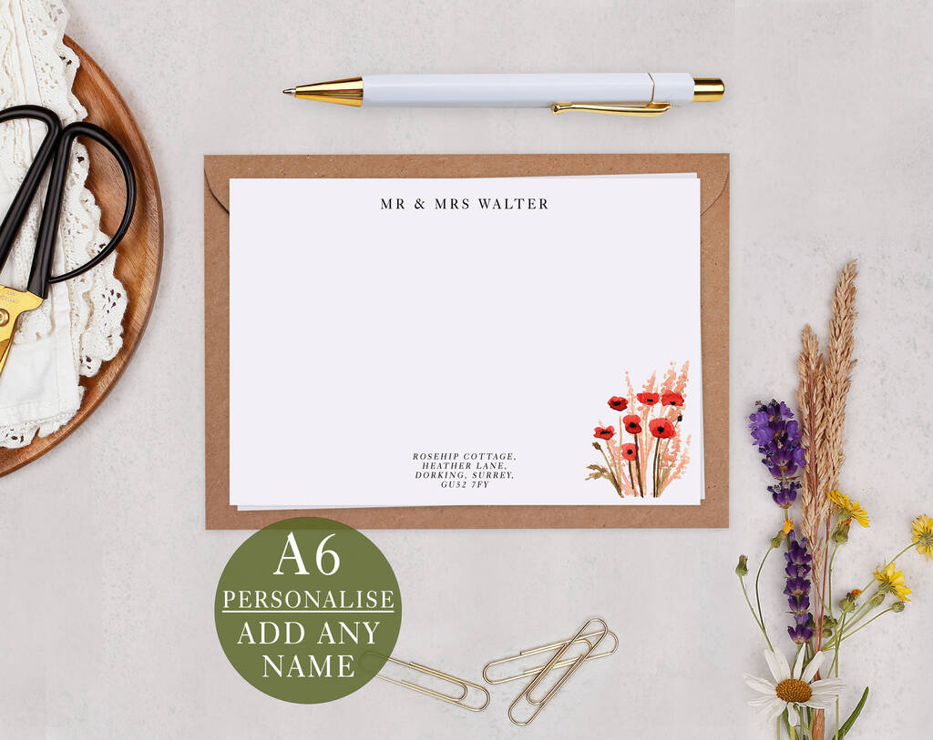 Poppy Personalised Address Note Cards A6 Notecard Set