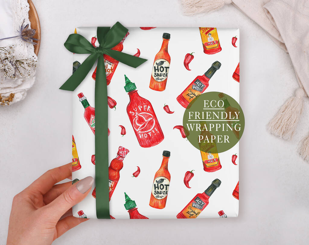 Valentine Wrapping Paper With Hot Sauce Design, Three Sheet Pack
