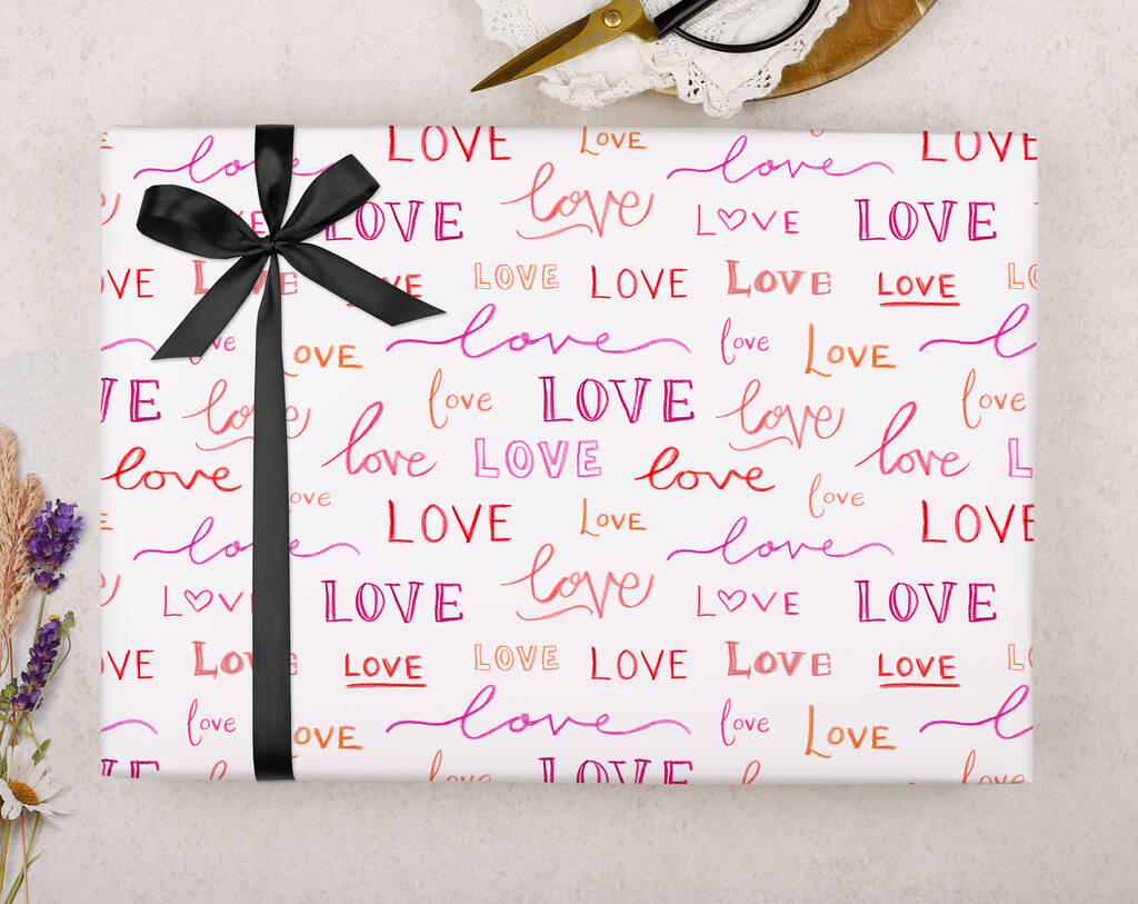 Valentine Wrapping Paper With Love Pattern, Three Sheet Pack
