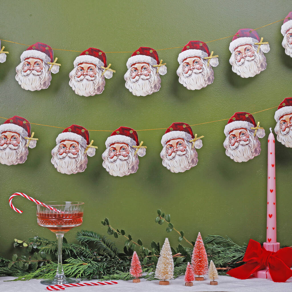 Vintage Christmas Bunting With 15 Santa Flag Design