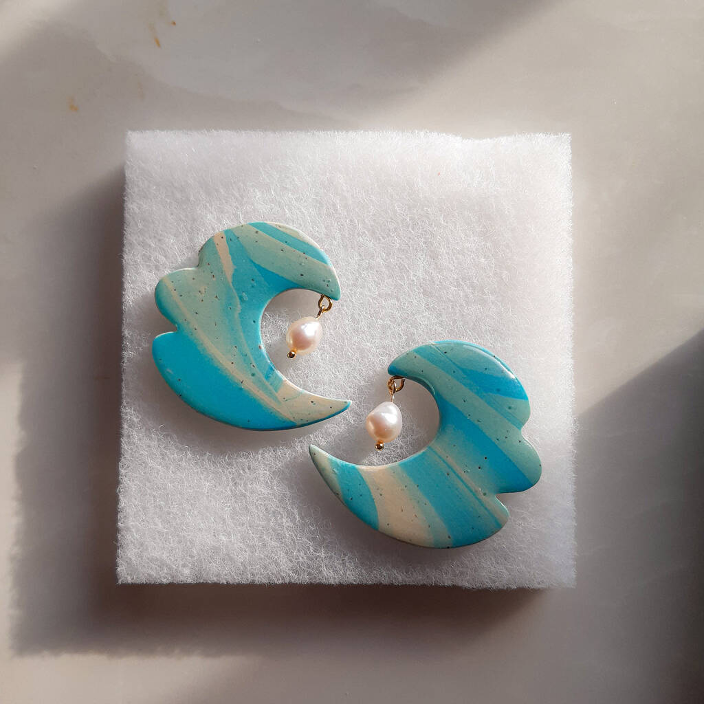 Tidal | Pearl And Polymer Clay Statement Earrings