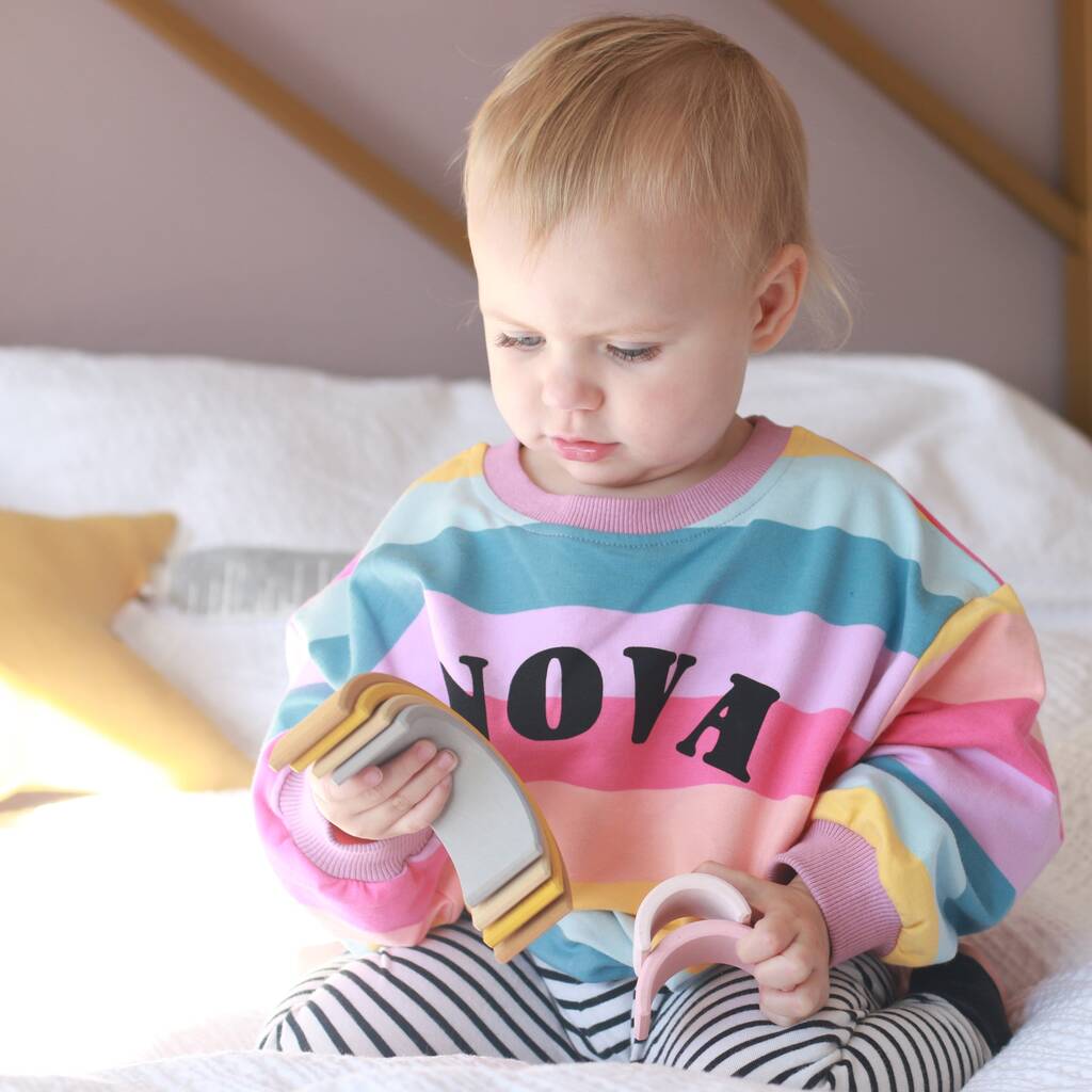 Personalised Pastel Rainbow Kids Slouch Jumper