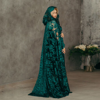 Boho Lace Bridal Cloak With Hood | Emerald Green Wedding Cape