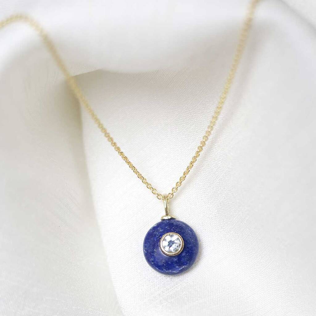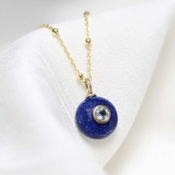 Sterling Silver Gold Plated Lapis And Blue Topaz Stone Set Gem Necklace