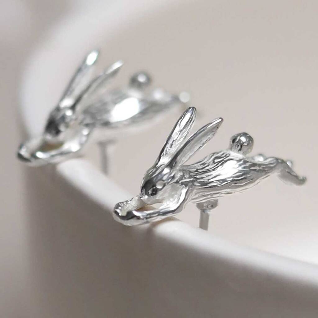 Sterling Silver Leaping Hare Stud Earrings