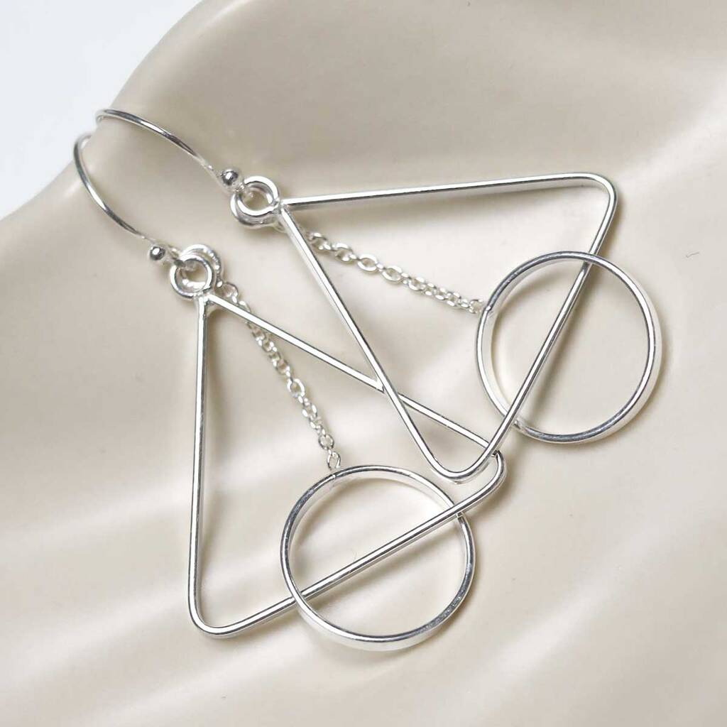 Our Sterling Silver Triangle And Circle Dangly Earrings are perfect for people who love geometric styled jewellery