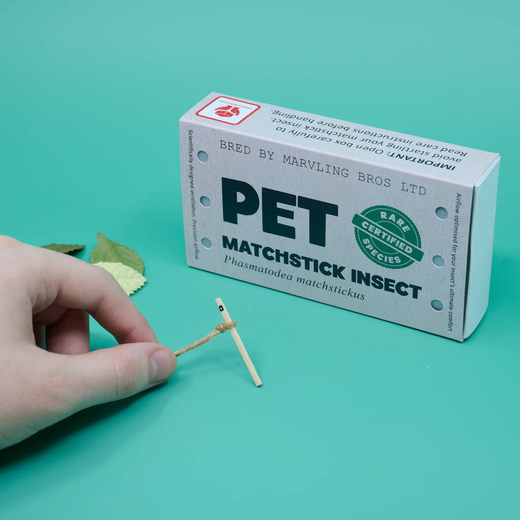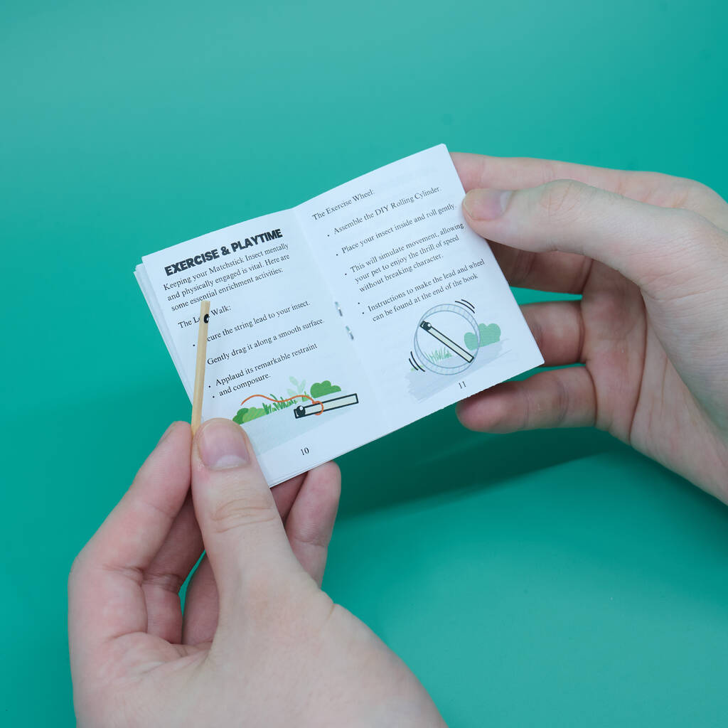 Alongside your insect, you’ll discover the Care & Training of Your Matchstick Insect manual - an essential guide filled with entirely unnecessary, yet hilarious, advice for raising your pet.