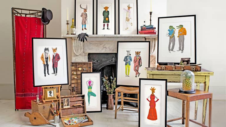 Artist Kerry Eggleton creates vibrant and characterful anthropomorphic animals and screen prints them meticulously by hand. Anthropomorphism has ancient roots as a literary device in storytelling, and also in art. Most cultures have traditional fables with anthropomorphised animals, which can stand and talk like humans, as characters. Intrigued by these hybrid forms which resonate throughout history and across cultures; Kerry has created contemporary characters in the style of a Victorian engraving, harking back to the golden age of the British circus.