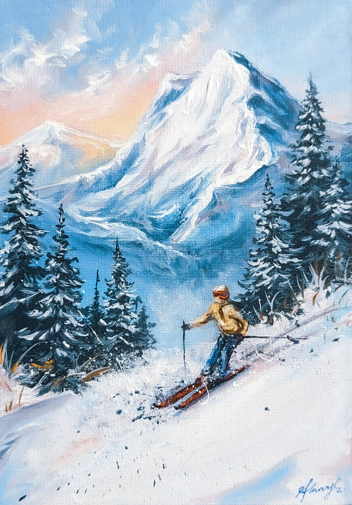 The rush of your first run of the season. There’s fresh powder underfoot and crystal clear blue skies overhead. You feel the cold air on your cheek, yet you’re cosy in your woolly socks. Slalom into that moment as you paint Ewelina’s Mont Blanc. You’ll learn her methods for creating deeply textured snow-capped peaks, as well as how light and shadow translate into vibrant colour in the study of snowy landscapes.