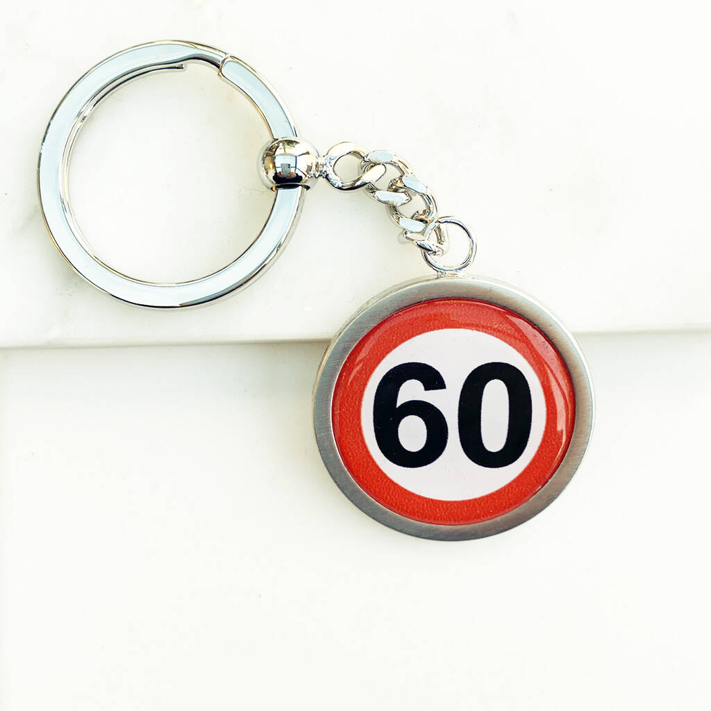 Perfect for celebrating a landmark 60th birthday, this miniature speed sign keyring features the speed or age of the recipient.