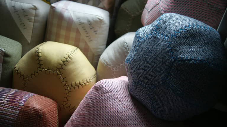 The pouffes are a special collection of one offs and limited edition, hand made pouffes in three different shapes and sizes, which I make at home, in Hertfordshire.