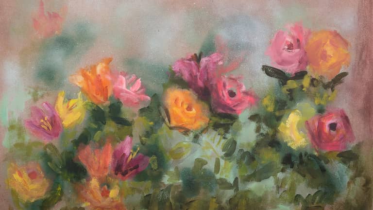 Paint as a medium offers a sensuality that is well suited to the expressive and intuitive nature of the work. The evocative use of colour and form creates a sensual environment reminiscent of Romanticism, offering to the viewer a personal experience of the cultivated ideal of nature.