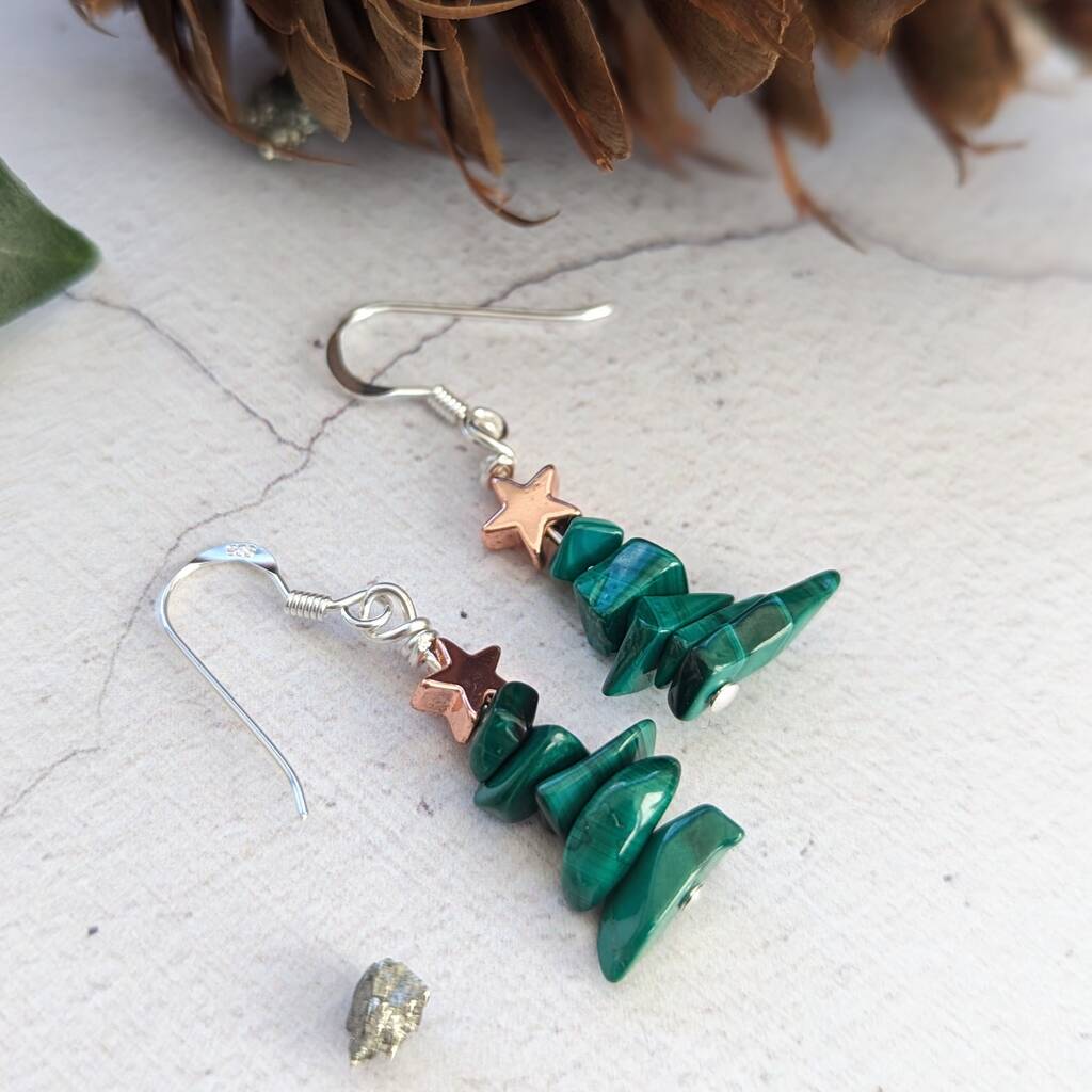 Our Malachite Christmas Tree earrings are the perfect way to make a statement with your Christmas Earrings this year!