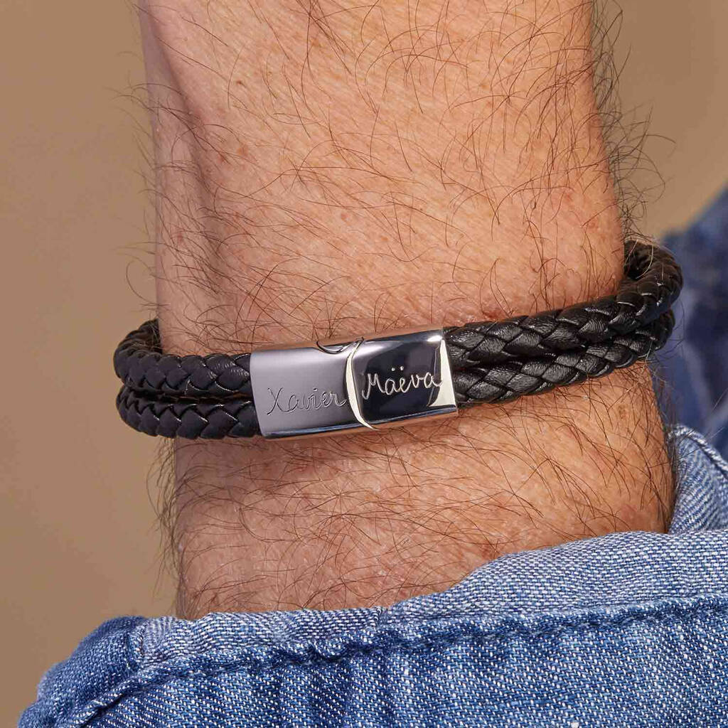 Men's Personalised Double Leather Bracelet