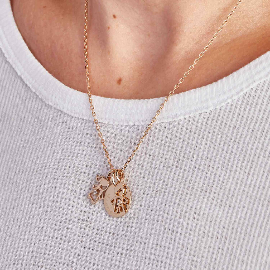 Featuring a choice of crystal boy or girl mini charms to represent little ones, this necklace is a sure to capture mum's heart. Personalise each necklace with hand-engraved names, dates, or messages to let mum know just how special she is.