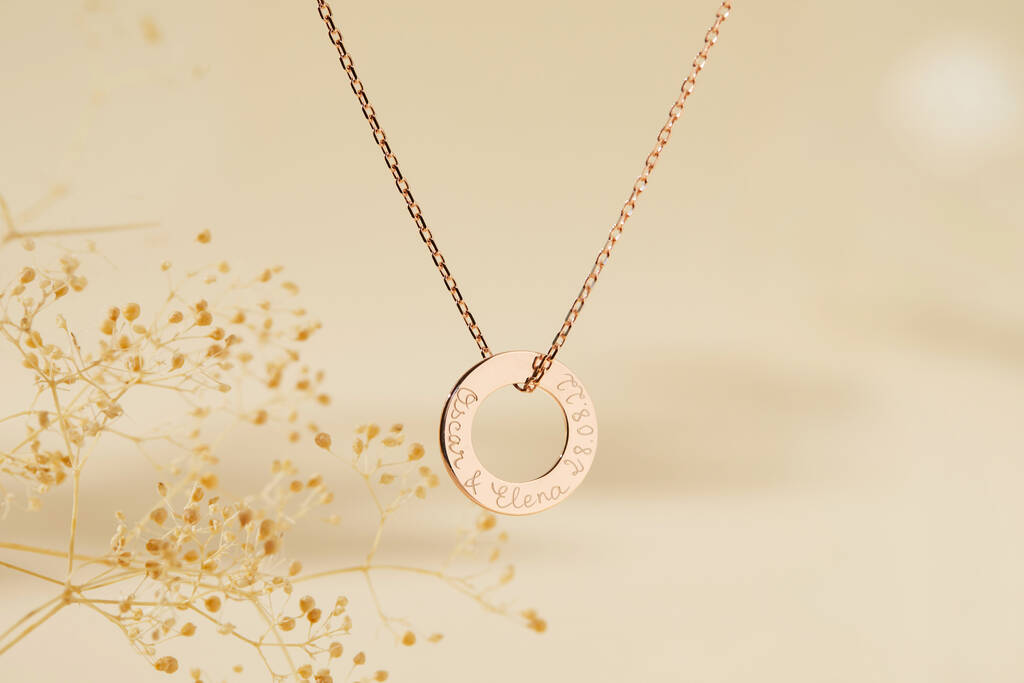 Our personalised engraved Eternity Necklace represents a lifetime of friendship and love, with your hand-engraved message on the front and reverse.
