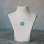 Each piece of jewellery starts life as a large sheet of art glass which is cut to size by hand and decorated with paint and glass shards. Pieces of glass are layered to create the basic form of the jewellery and then fired in the kiln to fuse the layers together. Some pieces are fired more than once to ensure the jewellery shows its best possible colour.