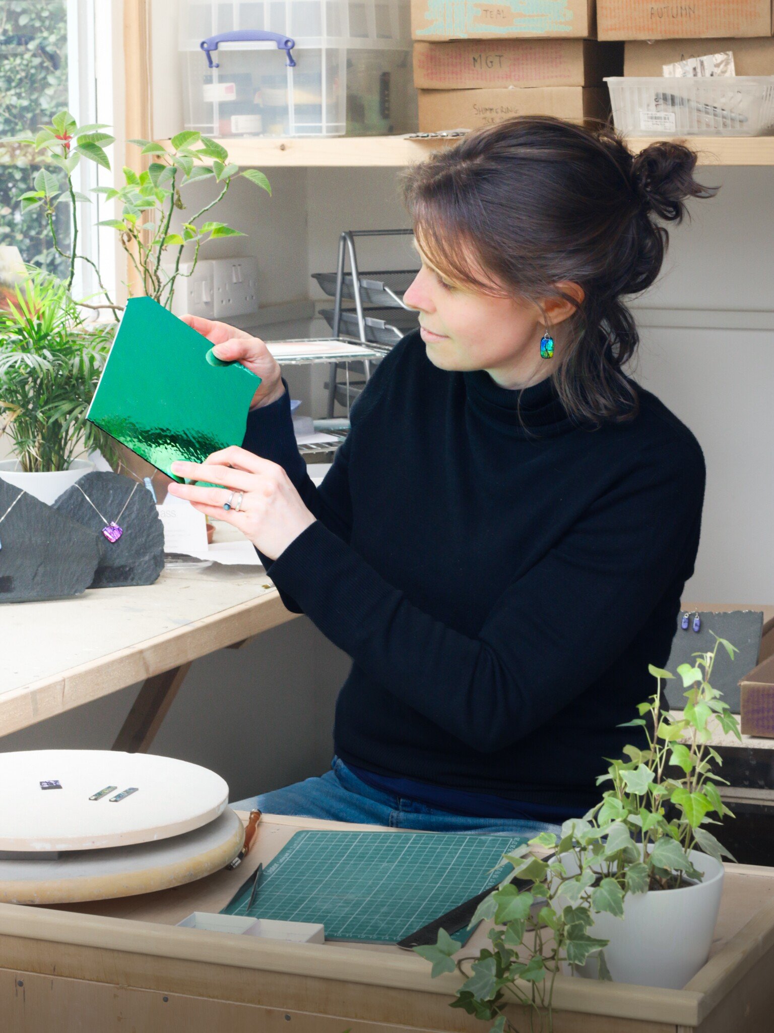 • Purple And Pink Dichroic Glass Pendant, Sterling Silver Necklace, thumbnail 7 of 7