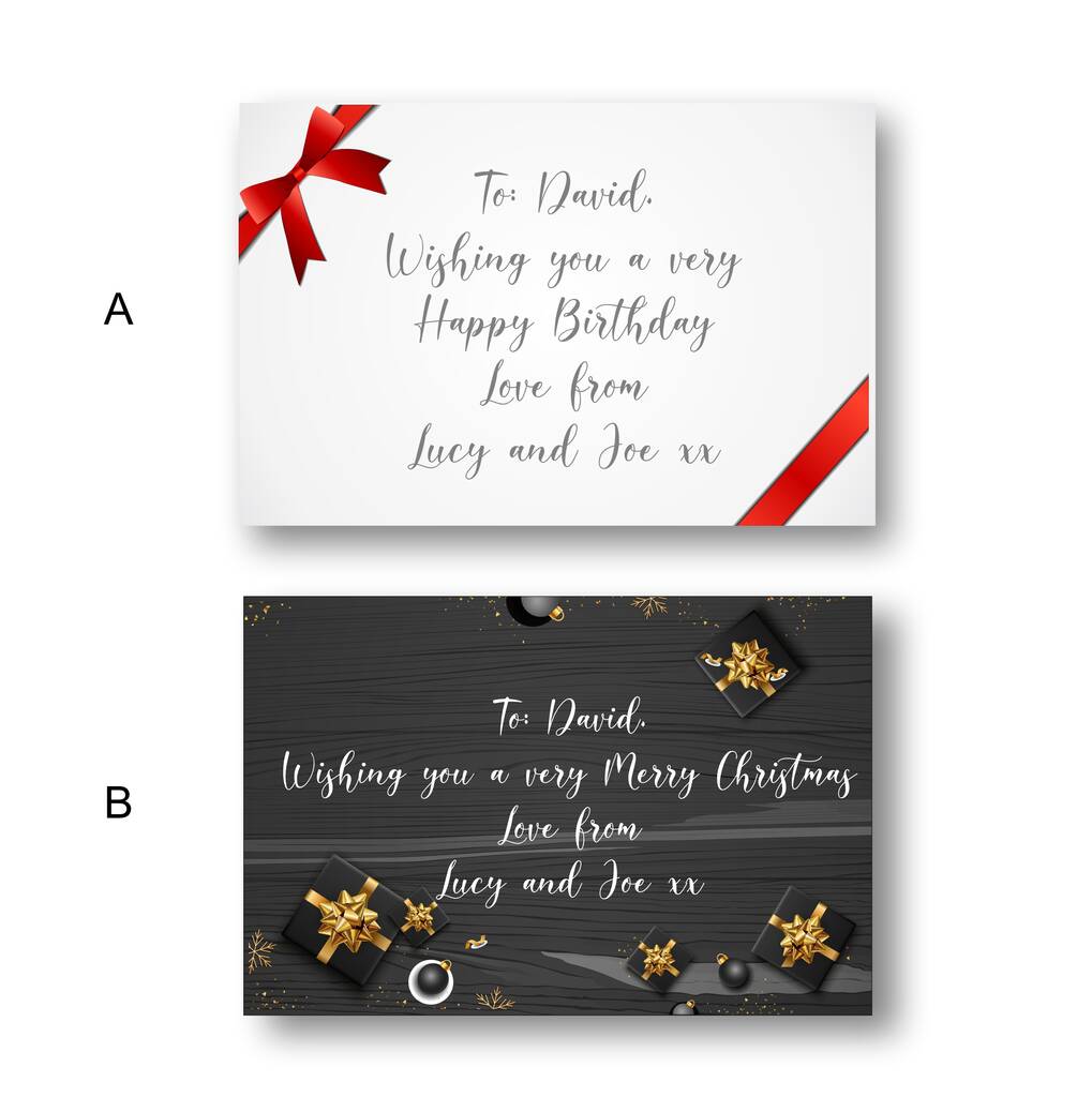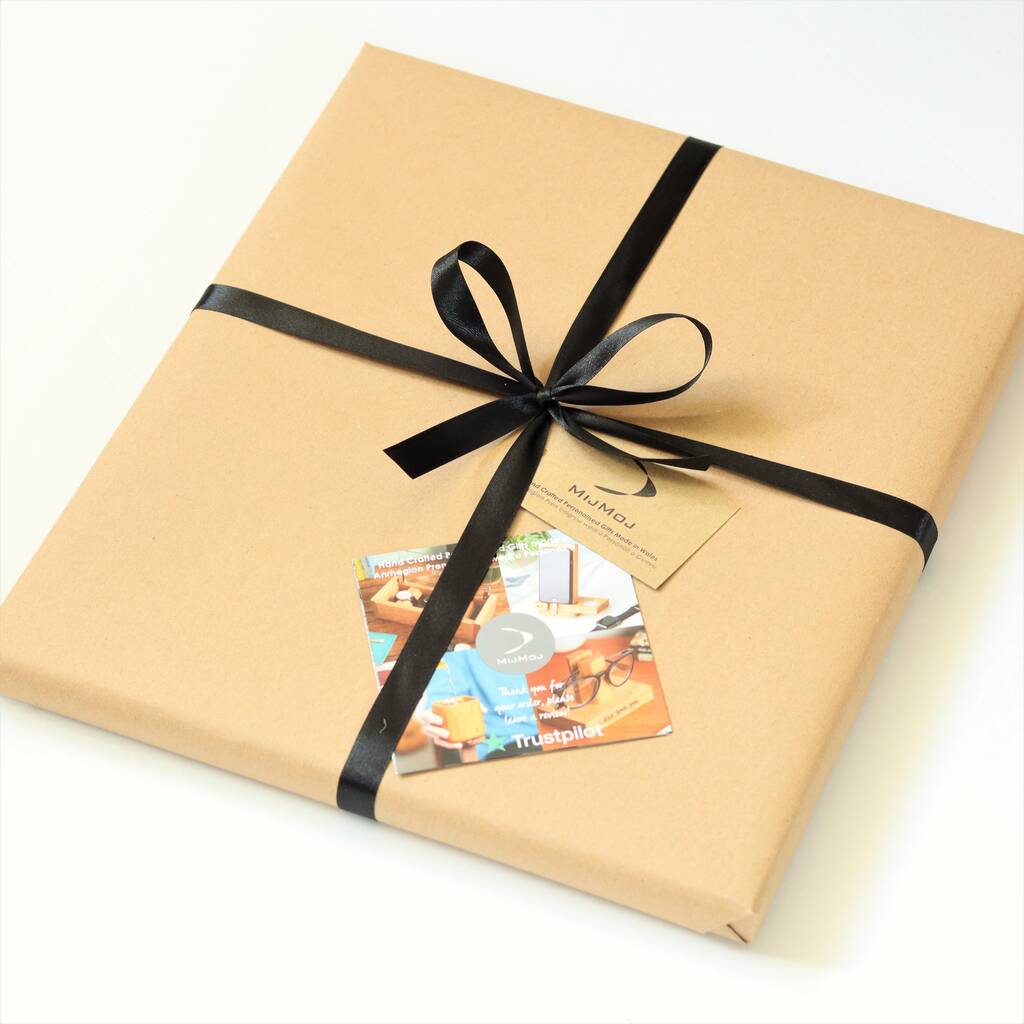 GIFT WRAP & PERSONALISED GIFT NOTE: Optional Kraft gift wrap with black satin ribbon and personalised gift note.