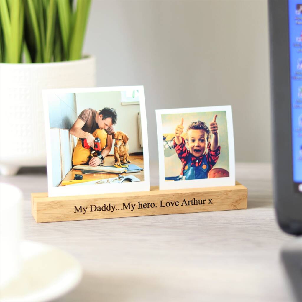 A personalised solid oak photo block with your photo prints, a heartfelt gift from children for dad or mum, perfect for birthdays or Father’s Day.