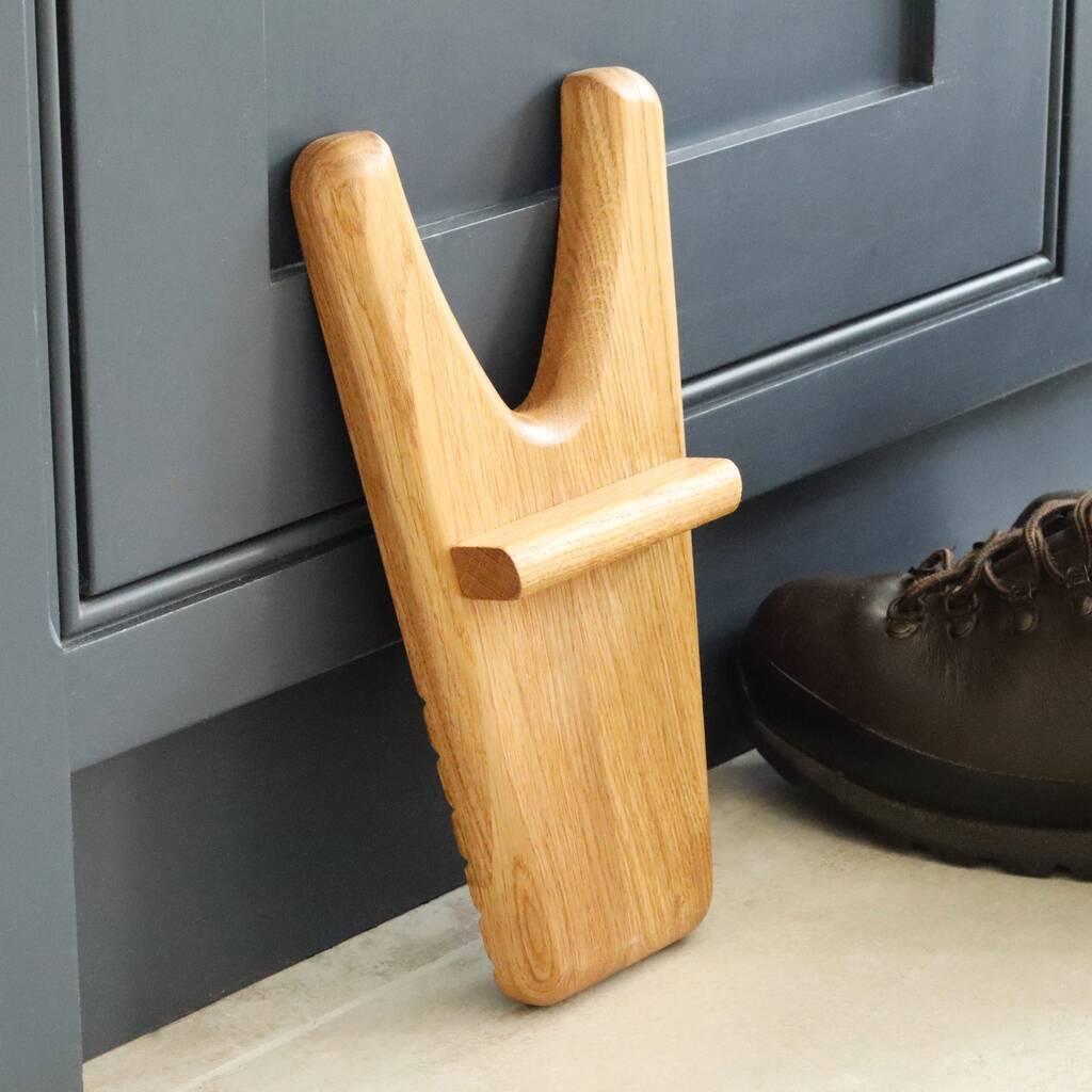 Handcrafted from solid oak, our stylish boot jack makes removing muddy boots effortless, a thoughtful, practical gift for walkers, farmers and gardeners.