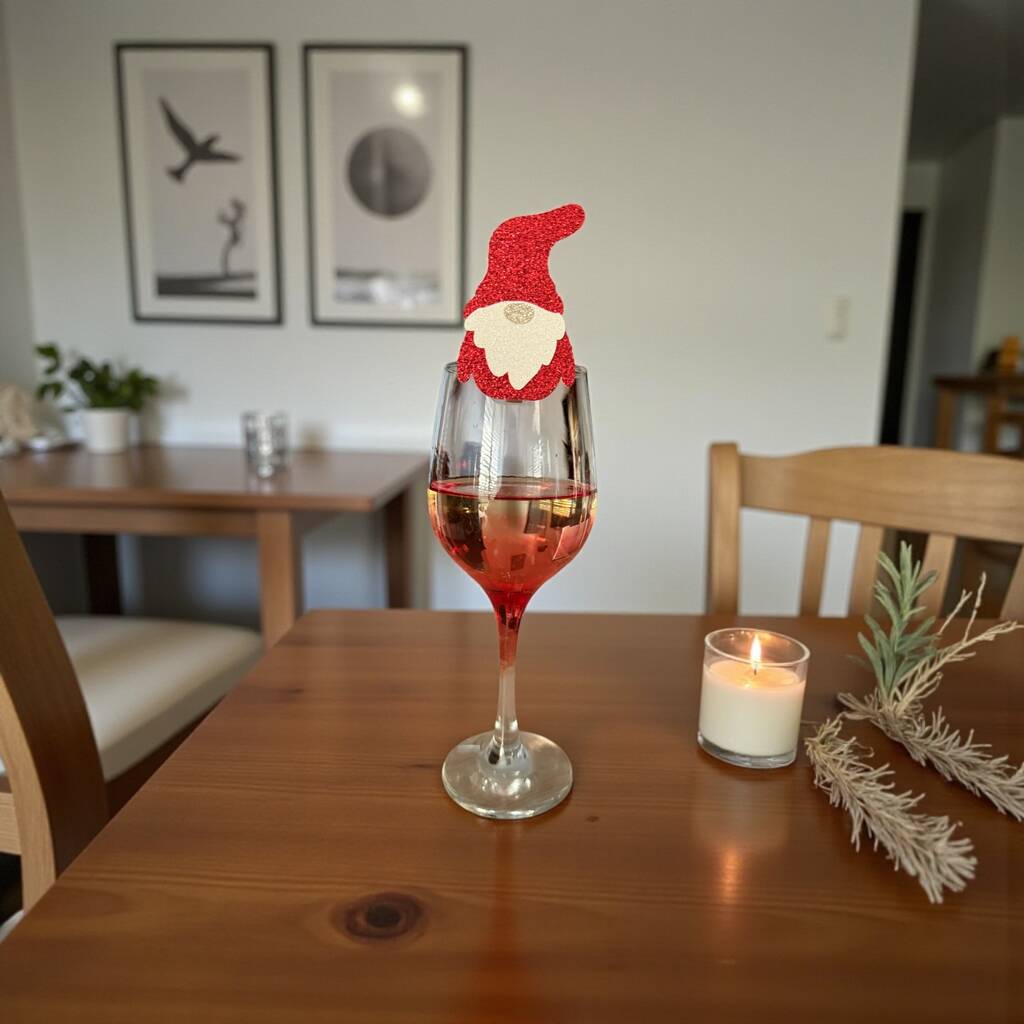 Six X Christmas Gnome Glitter Drinks Toppers, Cocktails, Mulled Wine, Festive Drinks, Scandinavian Gnom