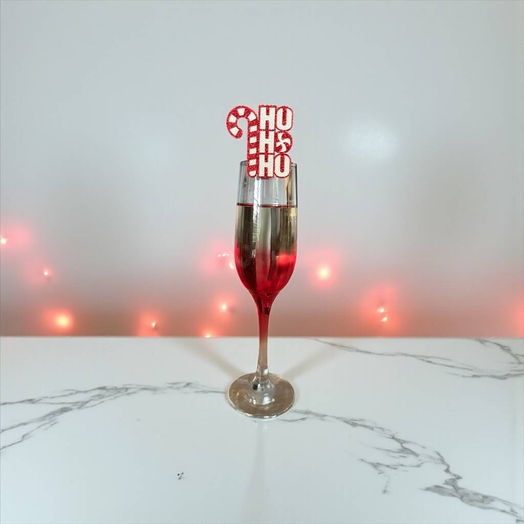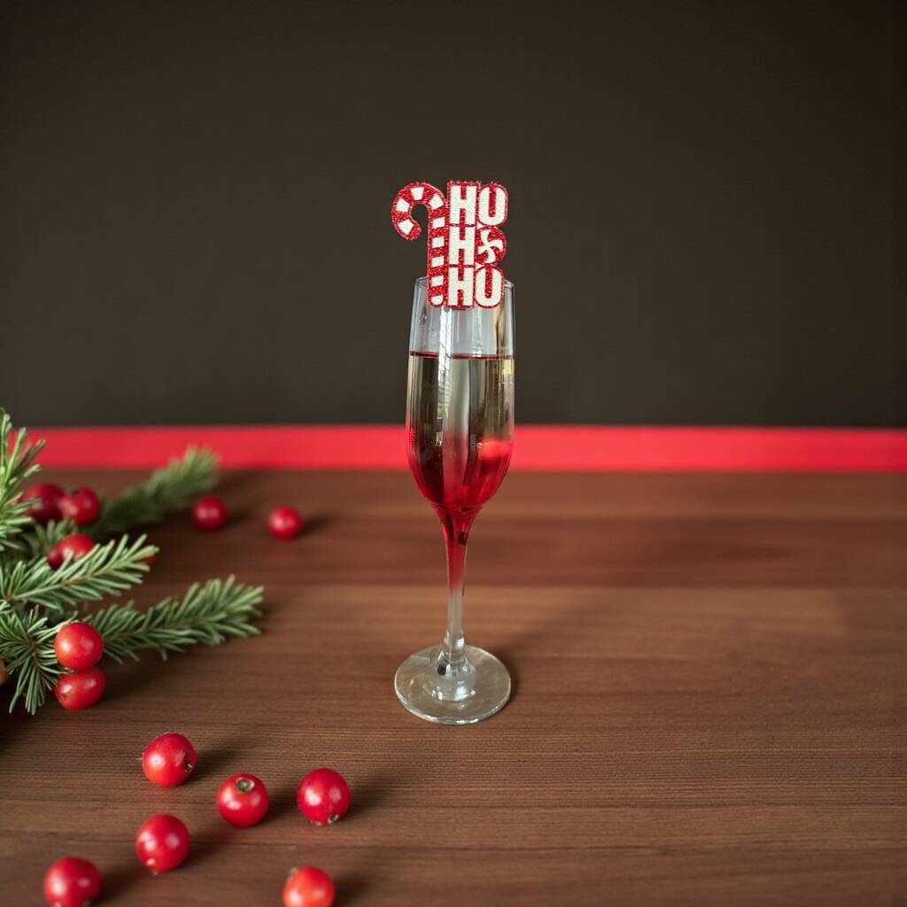 Six X Ho Ho Ho Candy Cane Drinks Toppers, Festive Cocktails, Christmas Drink Decorations, Charms