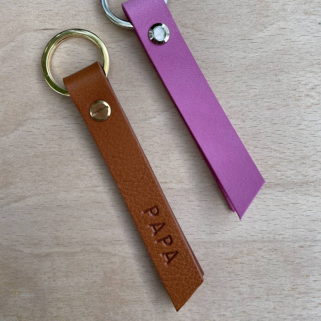 Each one is cut by hand from vegetable tanned leather in a range of rich, considered colours. Finished with a brass plated or nickel plated ring and solid brass or nickel plated screw post, it’s a tactile little piece.