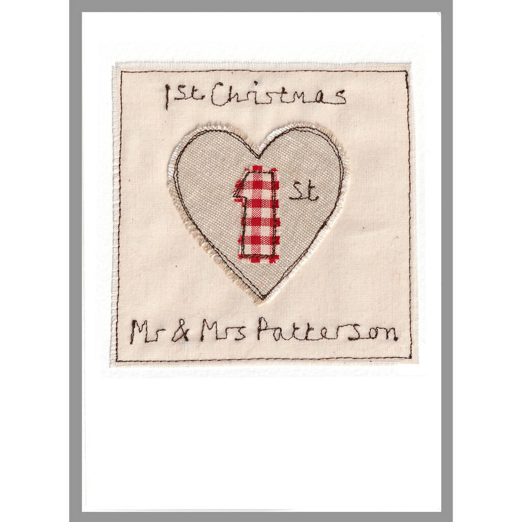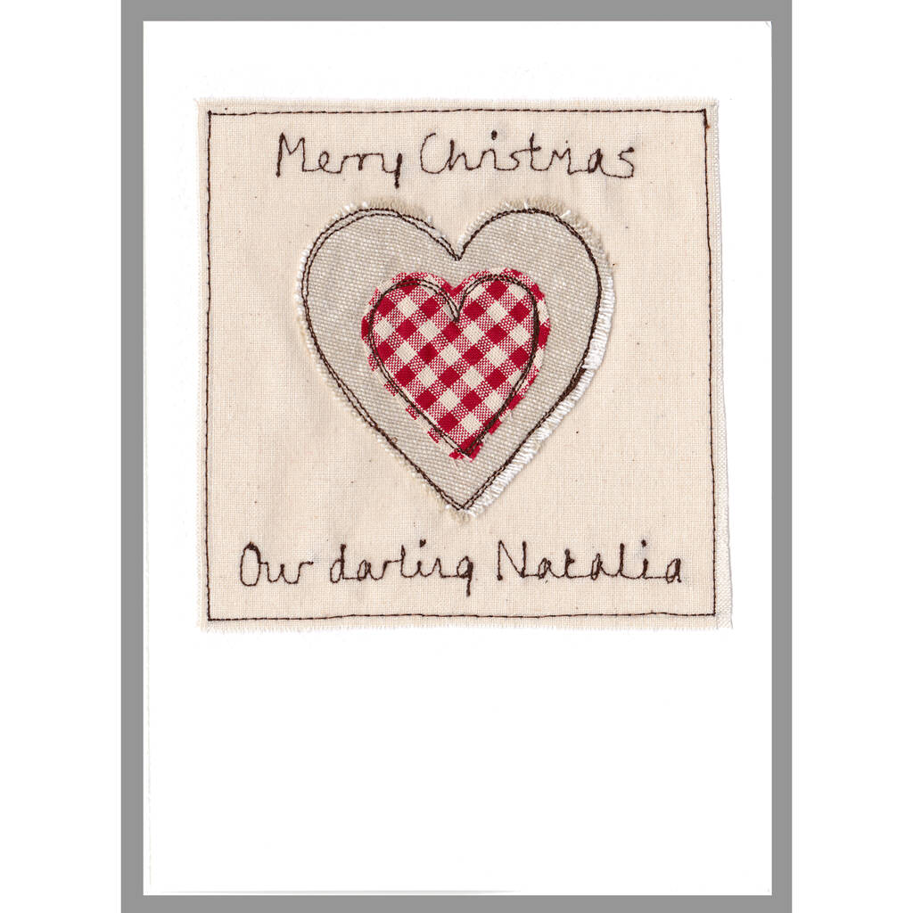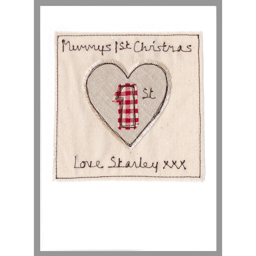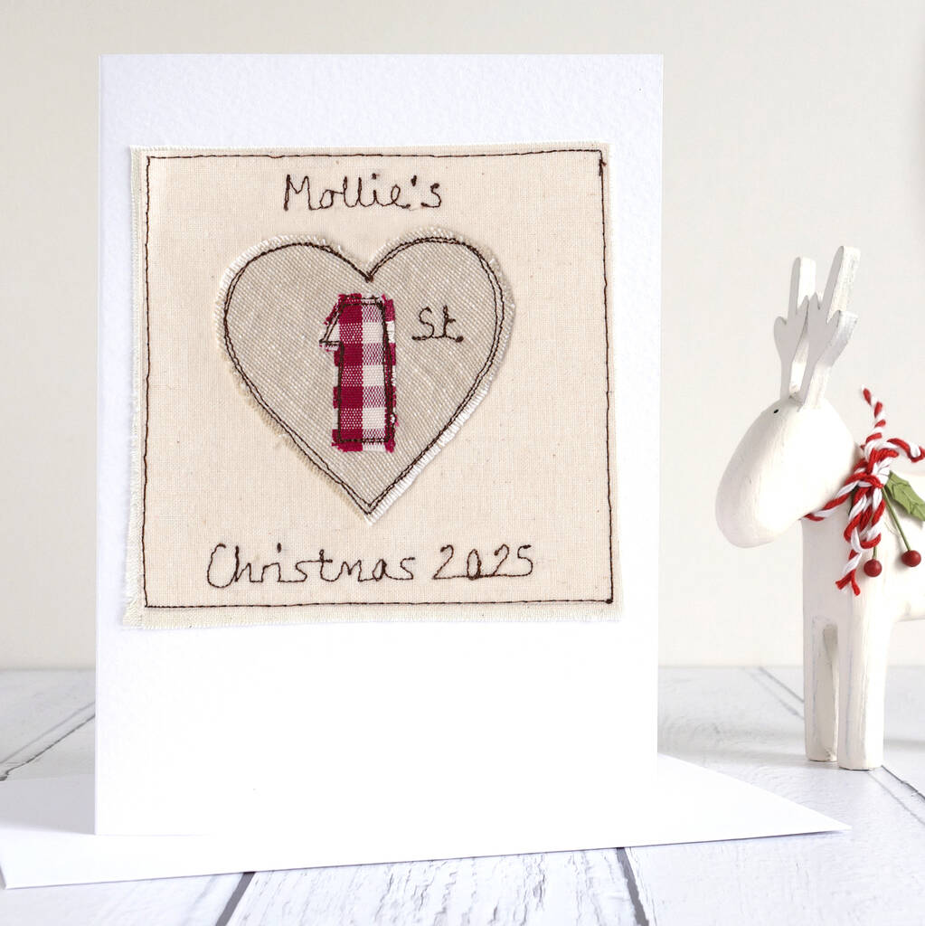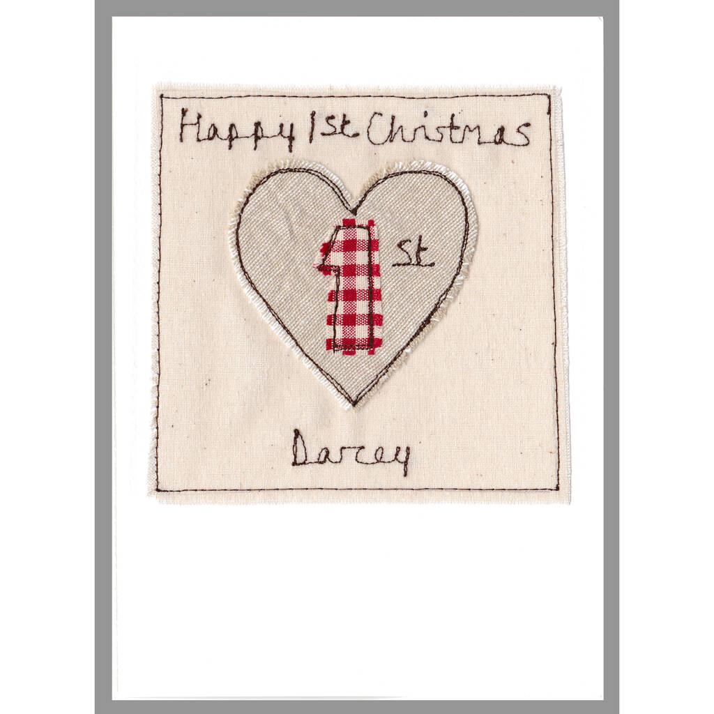 A lovely personalised embroidered fabric heart card, perfect to celebrate a baby's 1st Christmas for a daughter, granddaughter, goddaughter or niece.