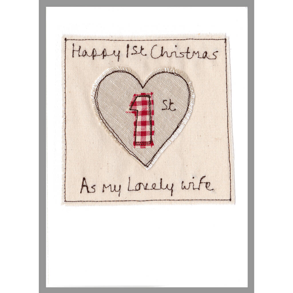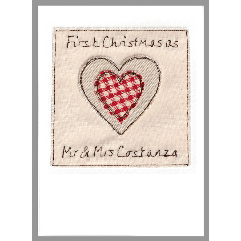 Handcrafted by milly and pip, this unique personalised Christmas card is available in 2 designs, HEART WITH 1st or 2 HEARTS. Each can be embroidered with any words of your choice, making it ideal to give to any loved one this Christmas.
