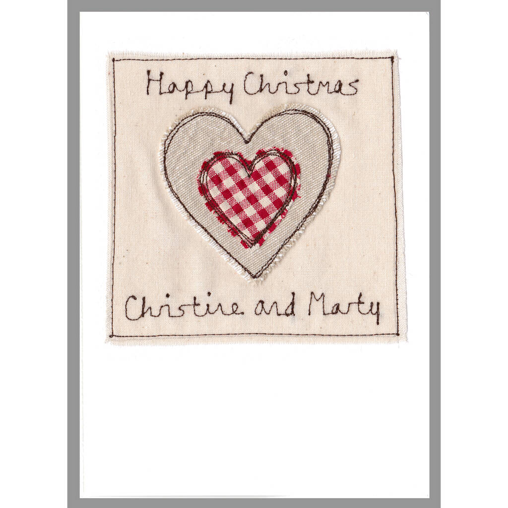 Each card is made to order using names, words or dates of your choice, which are embroidered above and below the appliqued heart.