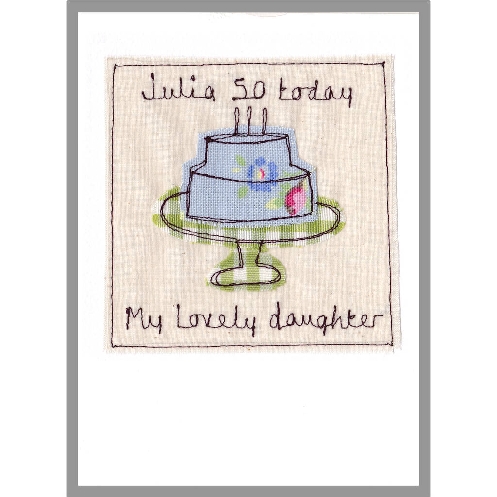 A gorgeous personalised birthday card for her. Embroidered with a yummy cake and your own choice of words, it's perfect for girls of any age.