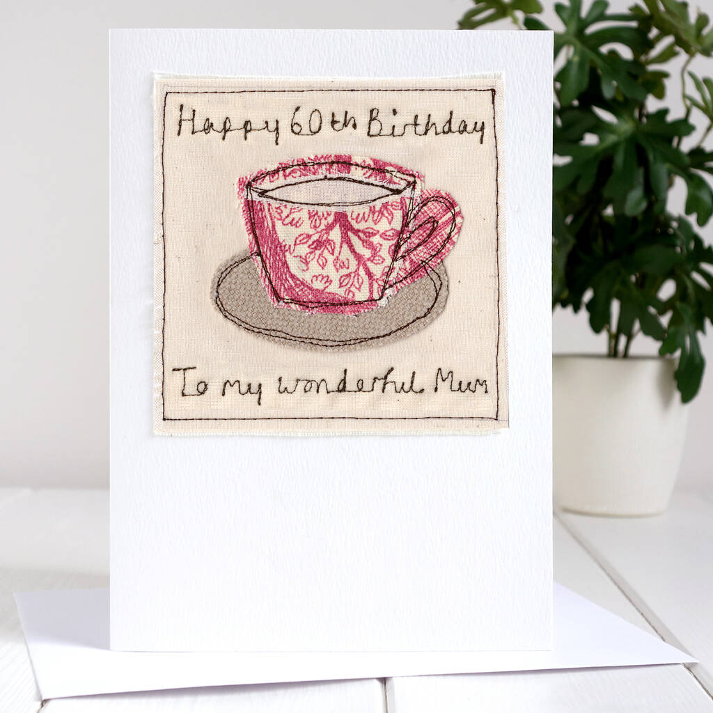 The card can be personalised with your own choice of words, which are embroidered above and below the tea cup.