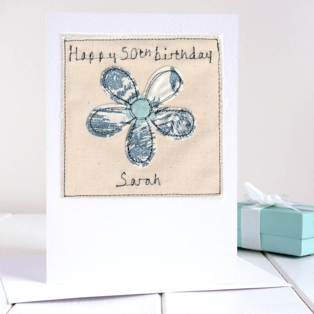 A lovely personalised embroidered flower card, ideal for wishing a happy birthday to any special someone, such as a mum, grandma, daughter or best friend.