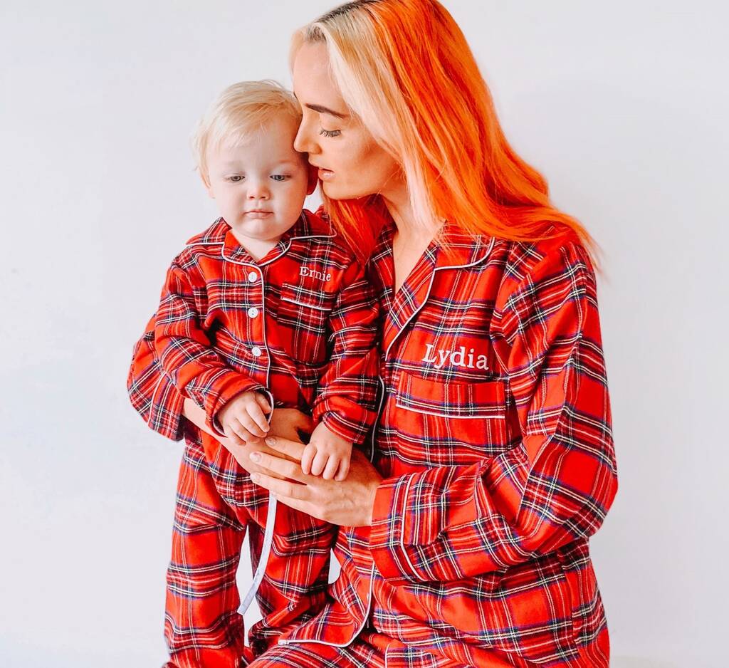 Personalised Matching Couples Luxury Brushed Cotton Christmas Tartan Pyjamas