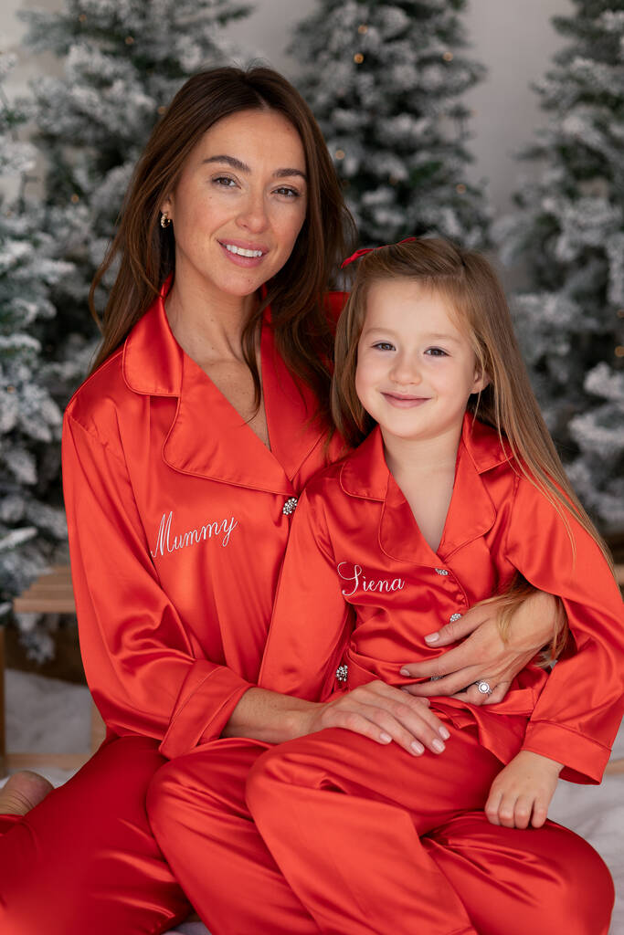 Personalised Women's Luxury Red Christmas Silky Satin Pyjamas