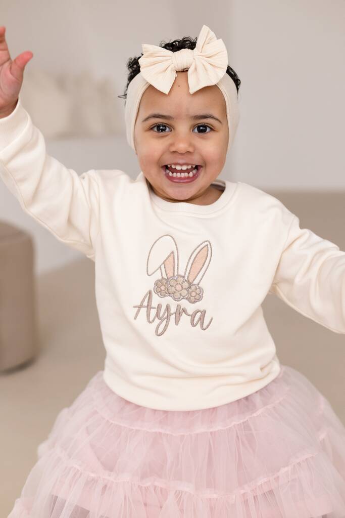 A gorgeous personalised name sweatshirt perfect for your Easter bunnies!