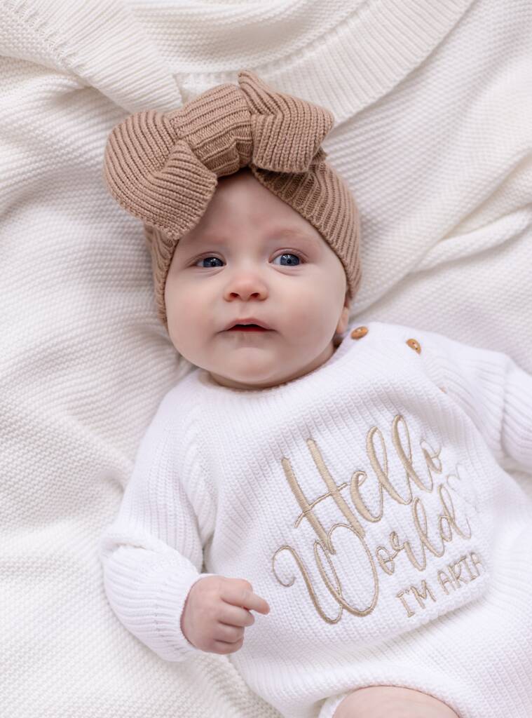 'Hello World I'm Name' Embroidered New Baby Long Sleeve Romper