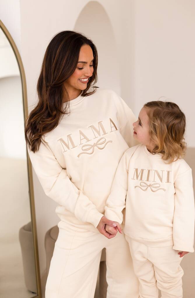 Ladies' Mama Embroidered Bow Sweatshirt With Optional Matching Mini Jumper. Perfect Mothers Day Gift