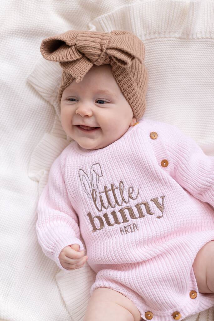 The perfect way to mark baby's First Easter - Text reads 'Little Bunny' and is personalised with the Child's Name.