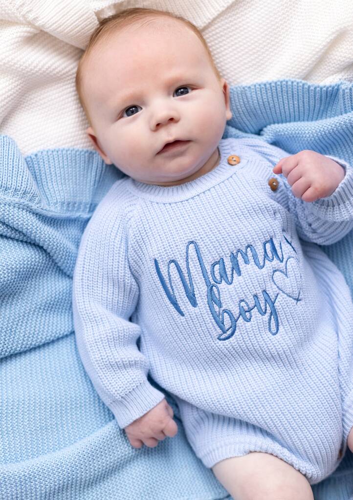 Beautiful Embroidered 'Mama's Boy' Romper - The perfect Mother's or Father's Day gift. Choose from Mama's Girl, Daddy's Girl, Mama's Boy or Daddy's Boy